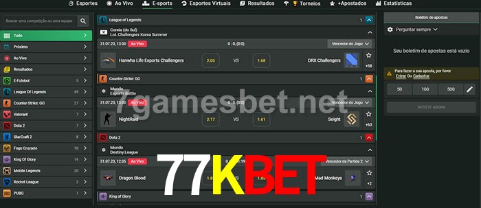 A aposta 77Kbet oferece aos jogadores a experiência mais conveniente de apostas em eSports!